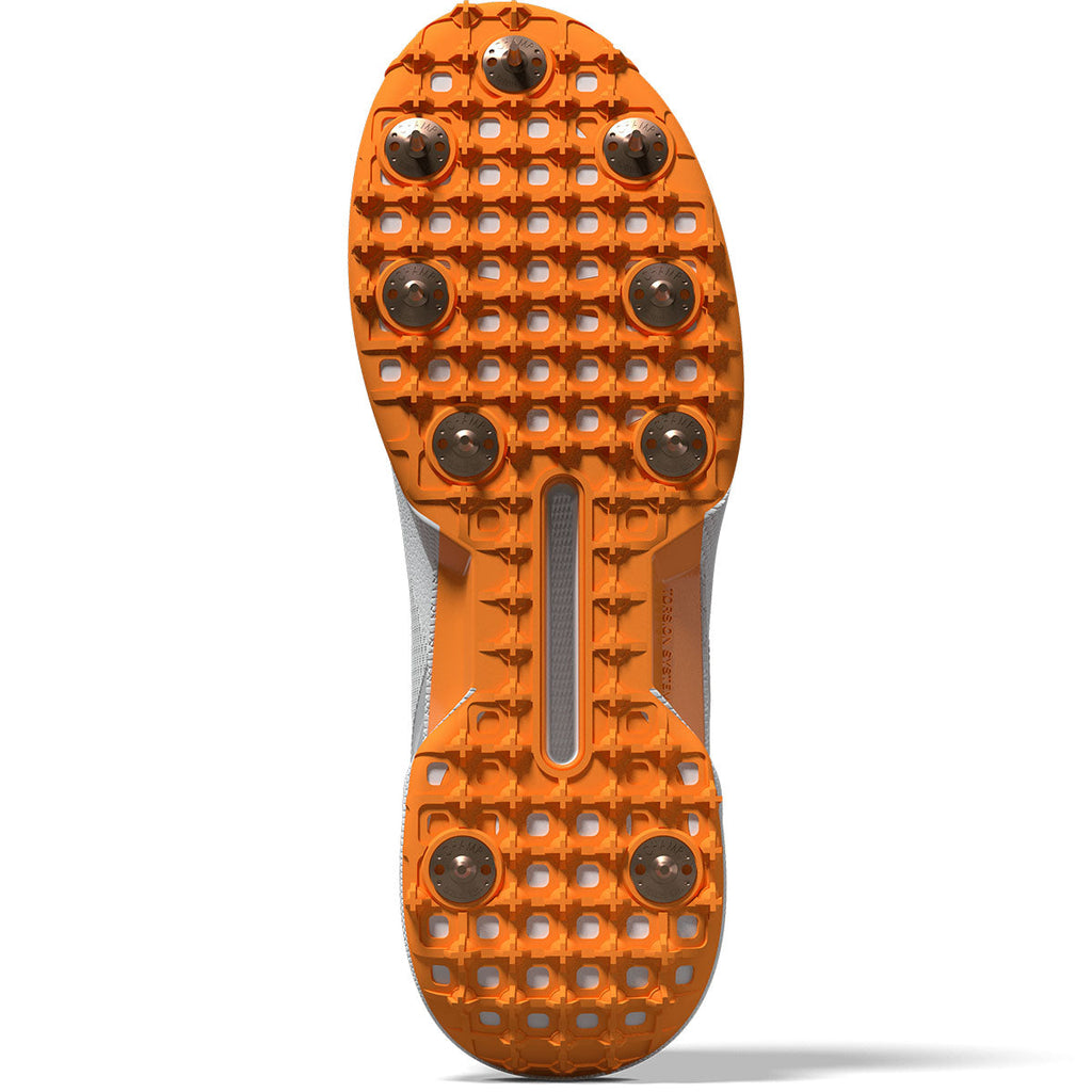 - The fully-lugged rubber outsole, equipped with 9 replaceable steel spikes, offers superior traction and stability, allowing you to pivot with ease.